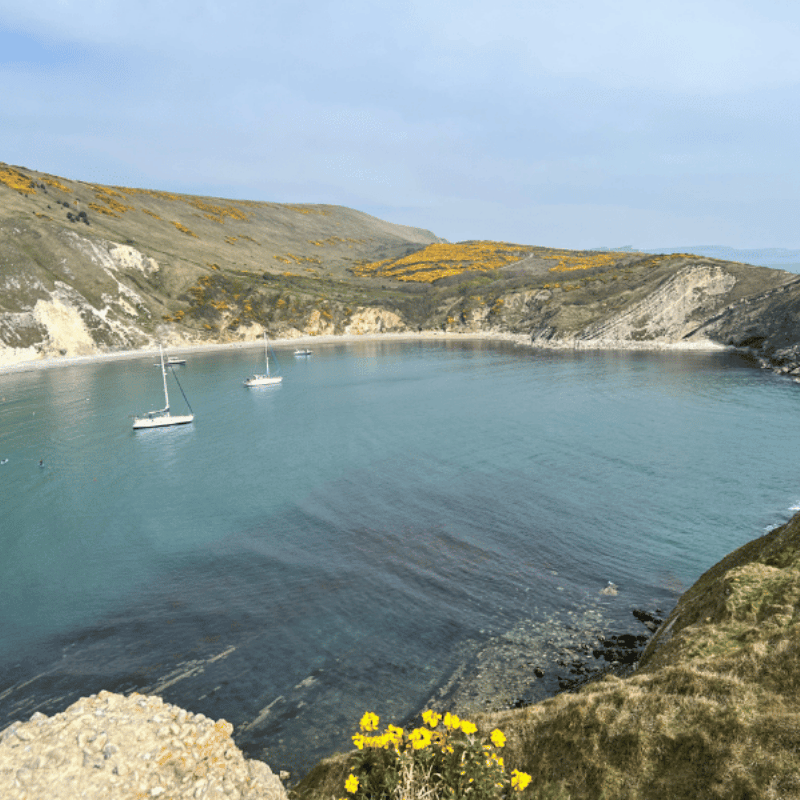 Depending on time, tide and wind direction, there is the opportunity to stop in some of the amazingly beautiful bays along this stretch of the Dorset coast for lunch or dinner.